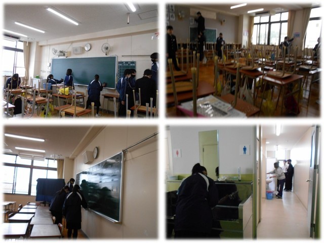 今日は令和7年度最後の一日です。1限に学年集会を行った後、2限の大掃除を取材しました。1年間お世話になった場所をみんなで一所懸命ピカピカにしていました。これで、気持ちも新たに次の学年に進級できますね!