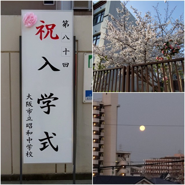 『入学式』当日の朝の様子です!準備万端整いました。桜も月も新入生の入学を喜んでいるようでとてもきれいです。「昭和中学校へのご入学おめでとうございます!」