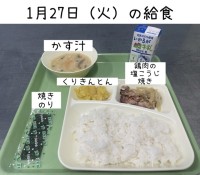 今日の給食で出た栗(くり)きんとんは、おせち料理でもおなじみの献立です。漢字で「...