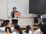 プログラムの最後は、絵本の読み聞かせです。地域のボランティアの方々の絵本を読む...