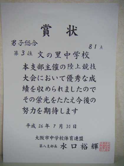 男子 優勝種目 3年800m 3年1500m 2年3000m 1年100mH