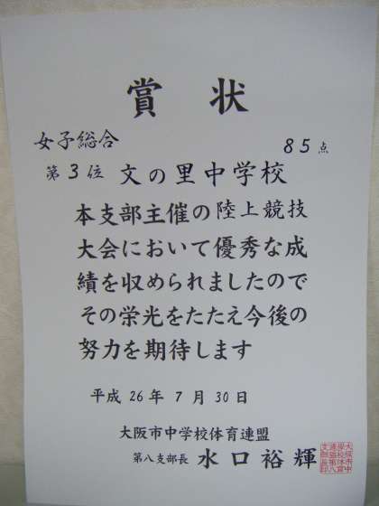 女子 優勝種目 1年200m 2年200m 3年走り高跳び゛3年砲丸投げ