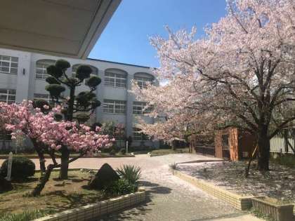正門の桜はまだ頑張って残っている今日この頃 平成最後の家庭訪問が始まりました。