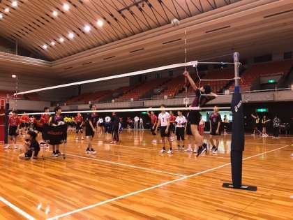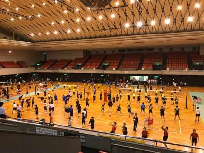 子どもたちは、どれだけボールを上げても天井に当たりそうにない、こんな大きな体育館での大会を楽しめたことでしょう。