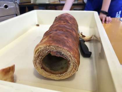 バームクーヘンがうまく焼きあがりました。感激の瞬間です。