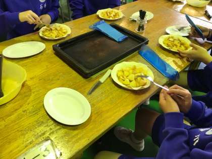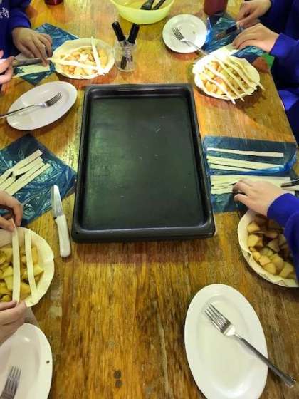 りんごが美味しくて、パイに入れずにつまみ食いしている人たちがいました。