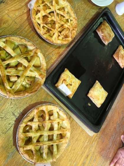 頑張って作ったアップルパイが焼きあがりました。甘酸っぱい良い匂いが漂ってきて、よだれが出てきそうです。