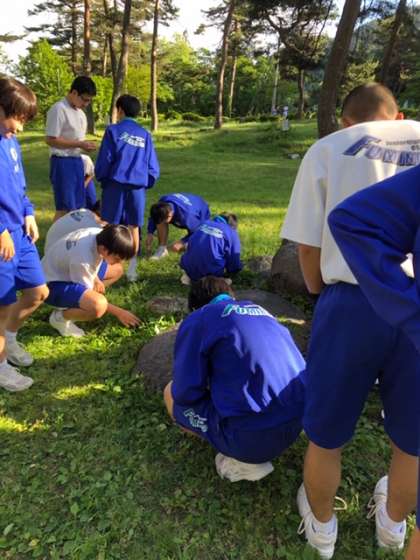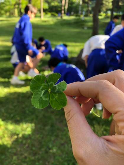 パターゴルフを終えたら皆で幸せの四葉のクローバー探し。