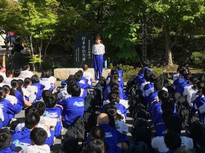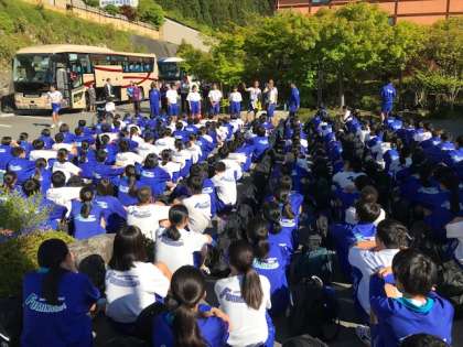 学級写真を撮ってラフティング会場へと向かいます。
