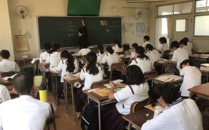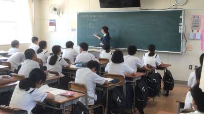 実習生による授業も行われています。緊張しながらも精一杯の授業。生徒に分かってもらおうと一生懸命な授業です。