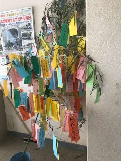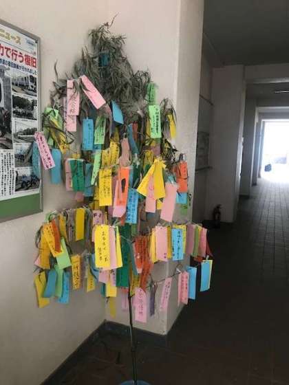 文の里中学校の笹にもみんなの願いがいっぱい掛けられました。叶うといいですね!