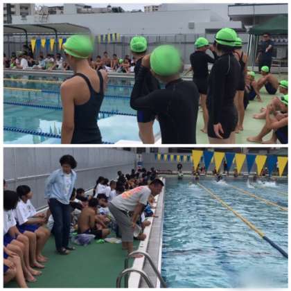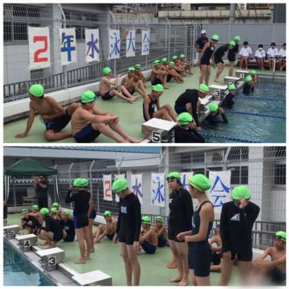 梅雨の合間の晴れ間に2年生の水泳大会が行われました。