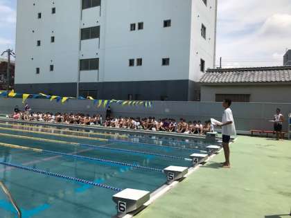 梅雨空を吹っ飛ばし、天候に恵まれた水泳大会。2年ぶりの水泳大会でしたが、プログラムを全て終えることができました。(1年時、降雨のため途中で中止。2年時、雨天中止)