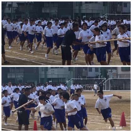 学年種目の「台風の目」を練習してました。今日のレースでは3組が1位でしてた。果たして本番では…?