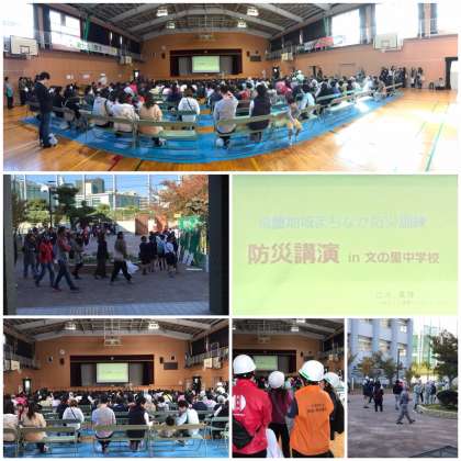 午前中、防災に関わる学習を通して、災害時に備えます。