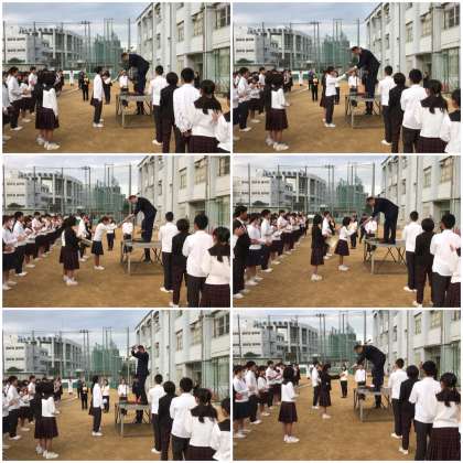 朝の全校集会で吹奏楽部(第41回マーチングバンド関西大会・金賞)、美術部(大阪府〈歯の保健〉図画・ポスターコンクール・入賞、入選)の表彰が行われました。
