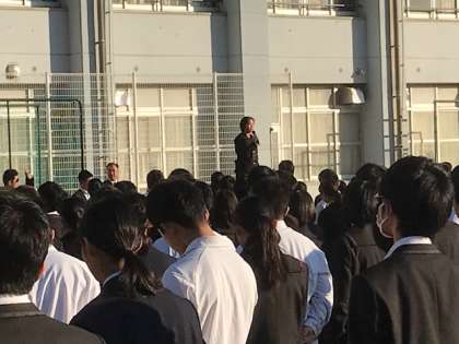 月曜日の朝です。全校集会が行われました。