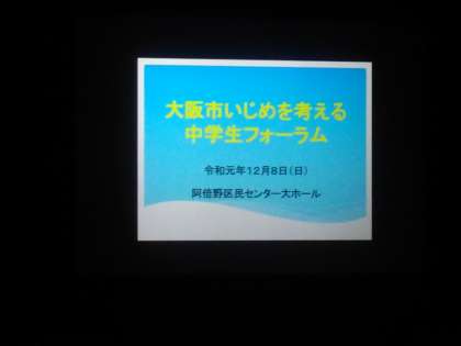 生徒会からは、8日(日)に阿倍野区民ホールで行われた「大阪市いじめを考える中学生フォーラム」でまとめられた「いじめストップ!見逃しゼロ!」のスローガンの報告がありました。