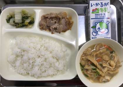 きっと生徒たちも喜んで食べたと思います。汁物は、さつまいもの入ったお味噌汁。季節感があり、とっても美味でした。