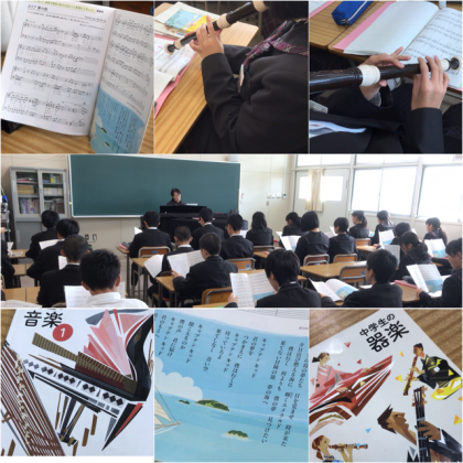 12日(木)4時間目に音楽の相互授業参観がありました。1年5組の皆さんが楽しく「カリブの夢の旅」を歌ったり、アルトリコーダーで「ふるさと」を演奏していました。