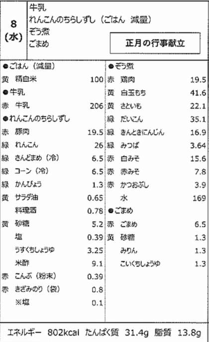 1月8日(水)今日の給食