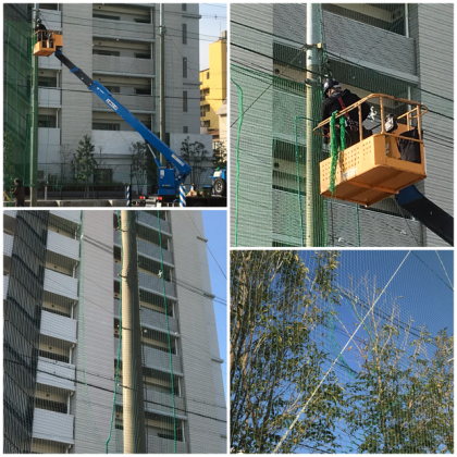 ネットの補修作業