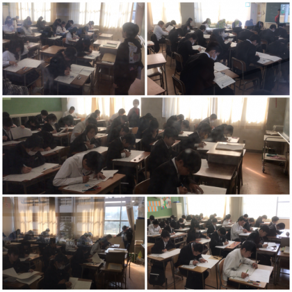 昨日からの国や大阪市の動きを受けて、バタバタの状態です。しかし、1・2年生の学年末テストは、落ち着いた雰囲気の中で行われています。