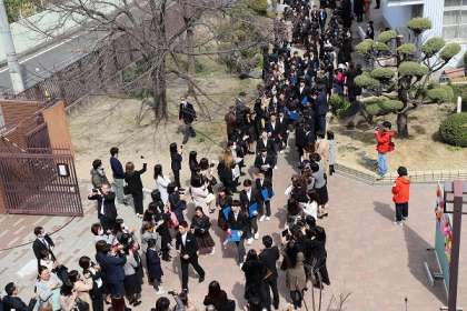それぞれの卒業証書を手に保護者や在校生がつくった花道を通って、巣立っていきました。