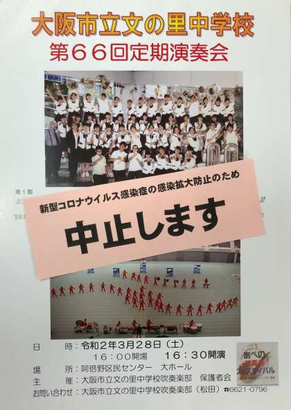 被害が拡大する新型コロナウイルス感染症の状況を鑑み、3月に予定していた「定期演奏会」の中止を決定致しました。