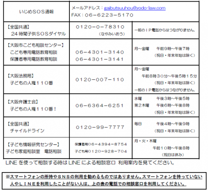 大阪市立の学校に通う児童生徒のみなさんが利用できる相談窓口について、お知らせします。 ※※相談窓口についてのお知らせ※※