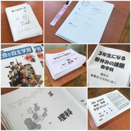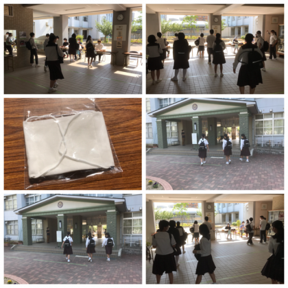 健康観察、文部科学省からの布マスクの配布、休業中の課題の回収・配布等を行いました。