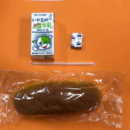 今日は、パンプキンパンに牛乳、固形チーズでした。