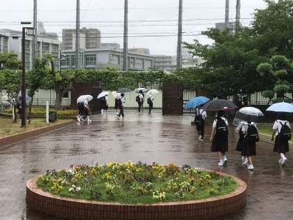 奇数班、昨日の午後の登校時には、登校後に天候が悪くなり、授業中に大雨が降りました。しかし、下校時に天候は、好転し傘要らずで下校しました。