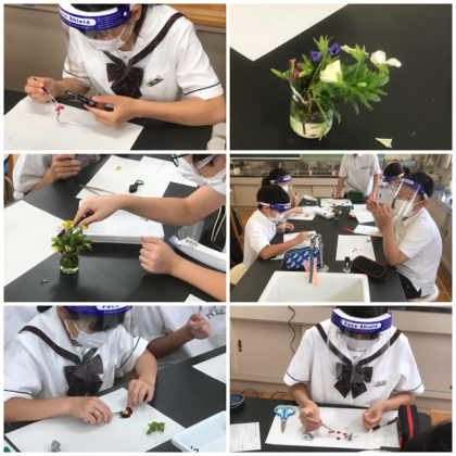 「いろいろな花のつくりを調べよう」をテーマにパンジー・ビオラ・ガクアジサイ・ナデシコ・金魚草等の花の観察をしました。