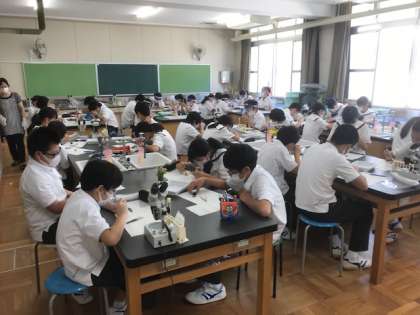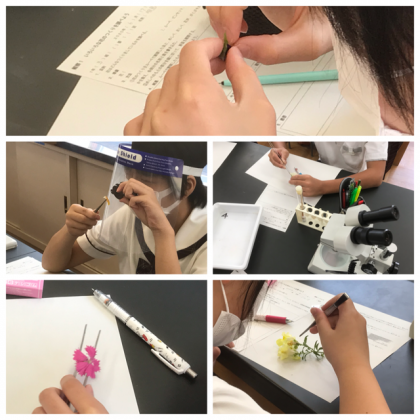 顕微鏡やルーペを使って、花の細かな部分まで観察し、スケッチしました。