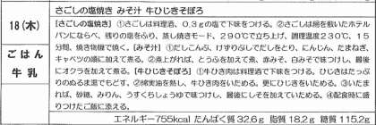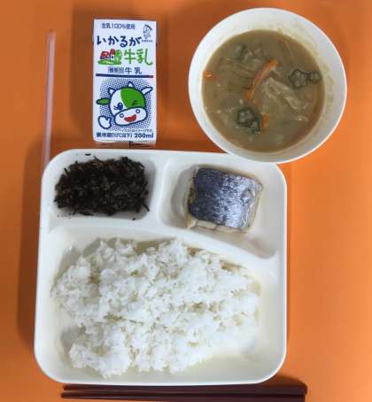 今日のメニューは、さごしの塩焼き、みそ汁、牛ひじきそぼろ、米飯と牛乳でした。