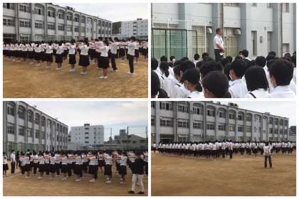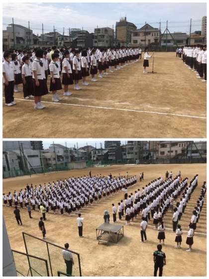 感染予防のために少し間隔をあけての集合です。その後、4月に予定されていましたが、延び延びになっていました「対面式」を行いました。1年生の「よろしくお願いします」のあいさつに続いて、在校生から「仲良くしていきましょう」のあいさつが行われ対面式を終わりました。