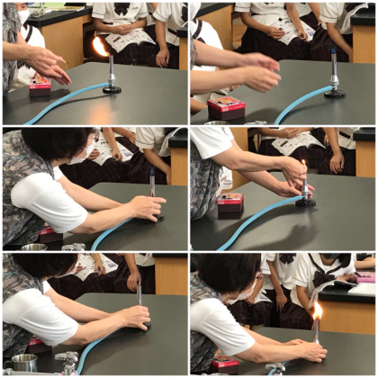 今日は、ガスバーナーの取り扱いについて学習し、その成果を確認していました。