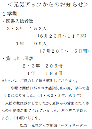 図書館の開館については、分散登校、完全登校後も長らくを開館することができませんでした。