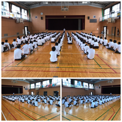 集会では、夏休み中の健康や学習、生活面についての話がされました。
