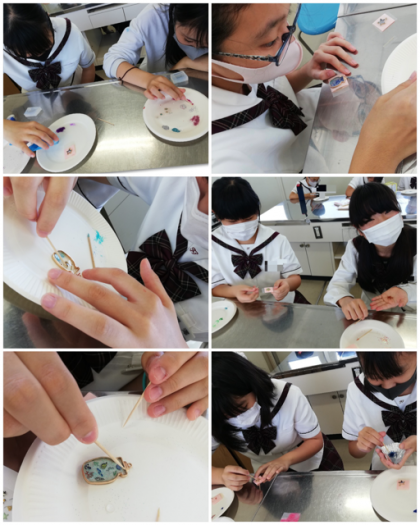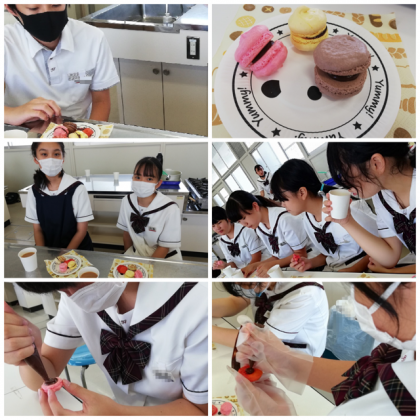 家庭科部は、夏休みを利用して、マカロン作りやUVレジンにチャレンジしています。