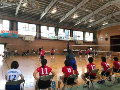 本日、体育館で女子バレー部のブロック大会が行われました。
