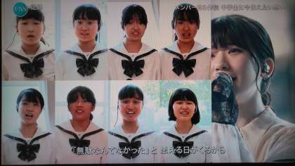 司会の相葉さんからは「本当に素晴らしいパフォーマンスでした。学生の方たちは一生忘れられない一日になったでしょうね」とのお言葉をいただきました。Nコンは今年、残念ながら中止となりましたが、「足跡」は来年の大会でも引き続き課題曲になります。「FNS歌謡祭」で、全国の合唱部、コーラス部を代表させていただいた得難い経験を糧にして、現2年生、1年生は来年の大会につなげられるよう、これからもコロナに負けず、次の「忘れられない一日」を目指して、頑張りたいと思います。