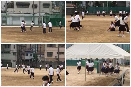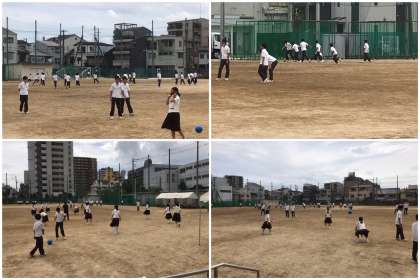 昼休みの運動場では、所狭しとバレーボールやサッカーを楽しむ生徒たちでいっぱいです。