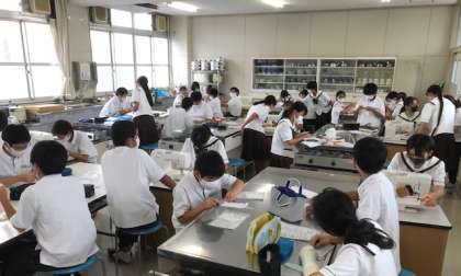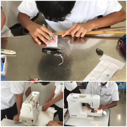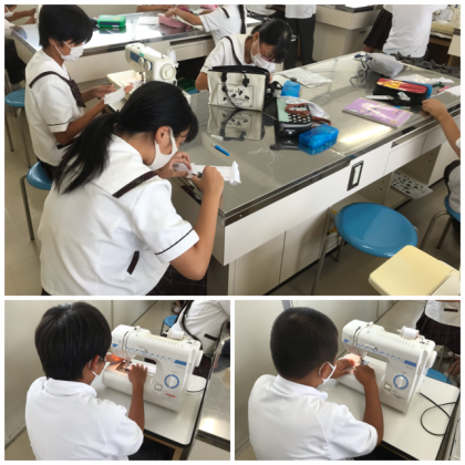 1年生の家庭科では、被覆の授業でマスクの製作を行っています。