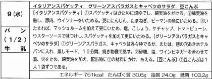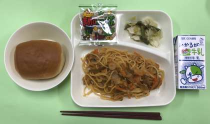 イタリアンスパゲッティにグリーンアスパラガスとキャベツのサラダ、豆昆布でした。