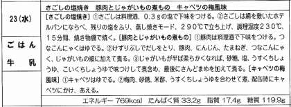 さごしの塩焼き、豚肉とじゃがいもの煮物とキャベツの梅風味でした。
