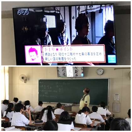 飛鳥時代、聖徳太子の冠位十二階や十七条の憲法についてビデオで学習していました。