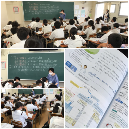 気体の集め方(水上置換法・下方置換法・上方置換法)について学習していました。