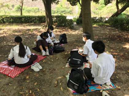 そろそろ昼食の時間になりました。きれいな秋晴れの空の下での美味しい昼食です。